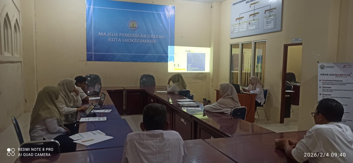 LHOKSEUMAWE – Majelis Pendidikan Daerah (MPD) Kota Lhokseumawe terus mematangkan kesiapan pelaksanaan program kerja tahun 2026. Bertempat di ruang rapat utama, jajaran pimpinan dan staf terkait…